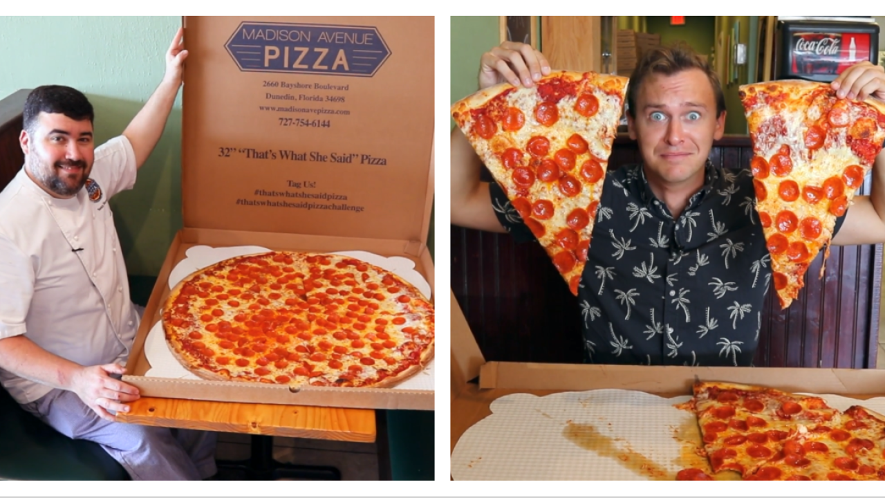 Madison Avenue Pizza is a fantastic pizza destination in Dunedin Florida. Madison Avenue Pizza Dunedin Florida. The Thats What She Said Pizza is 32 inches in diameter weighs 11 pounds around.